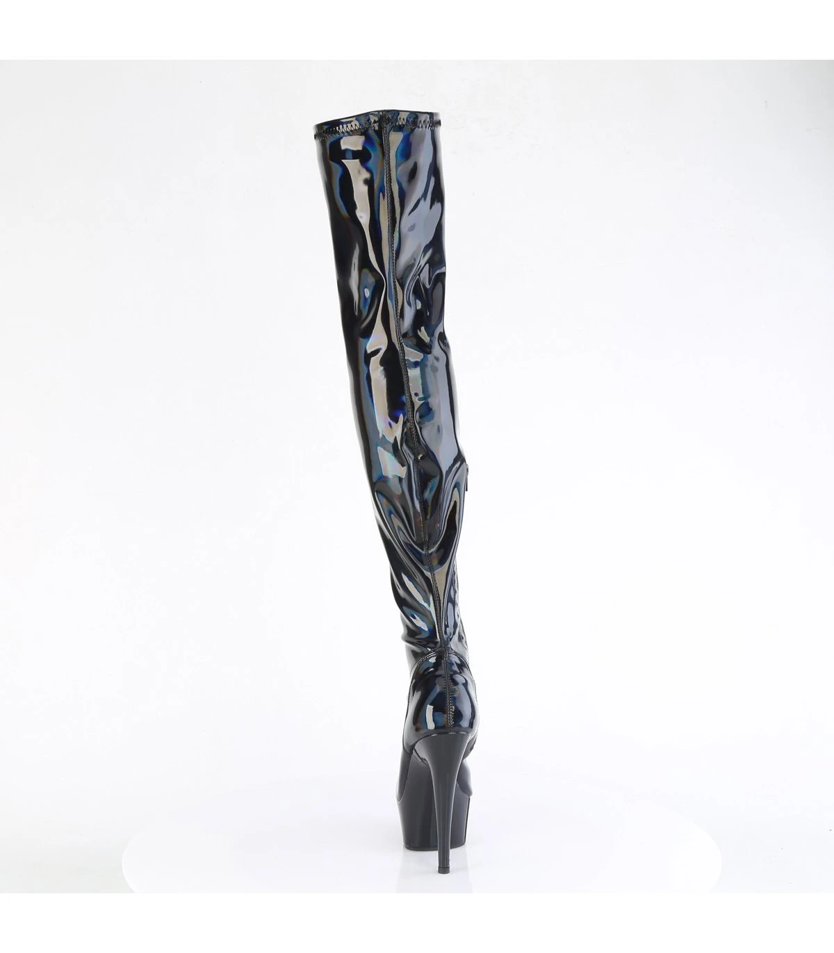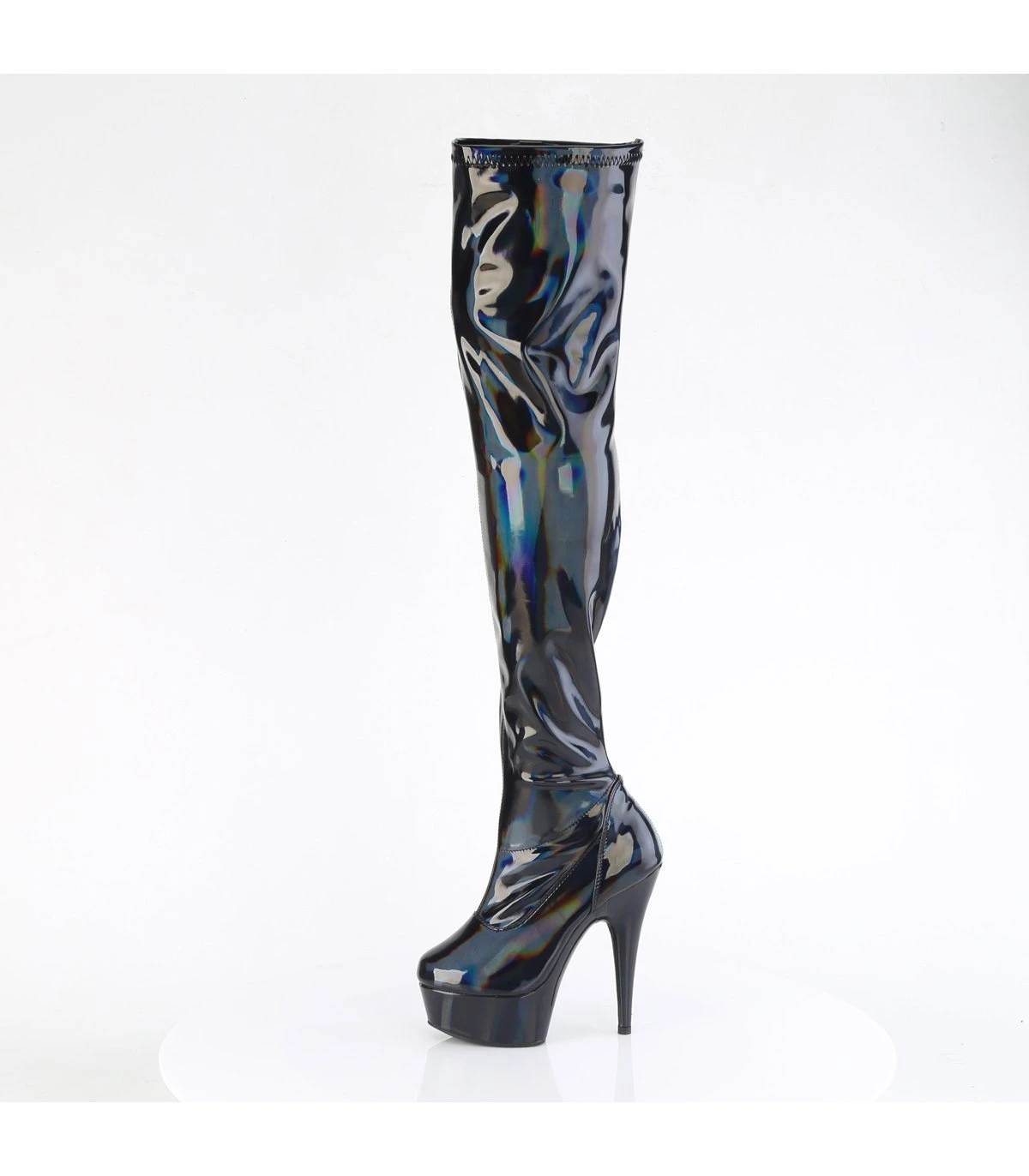 Plateau Overknee Stiefel – DELIGHT-3000HWR – Schwarz/Schimmernd | Pleaser