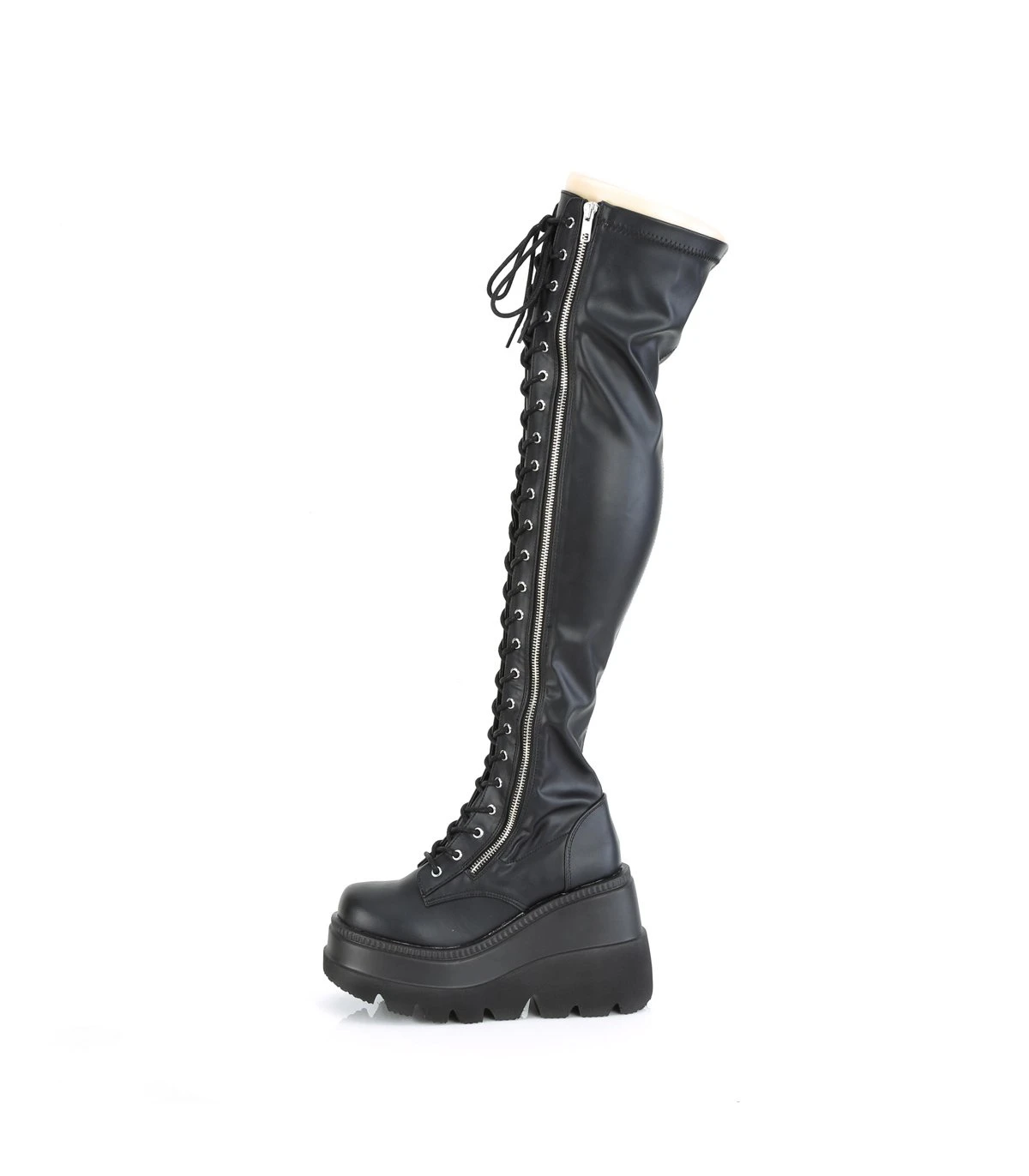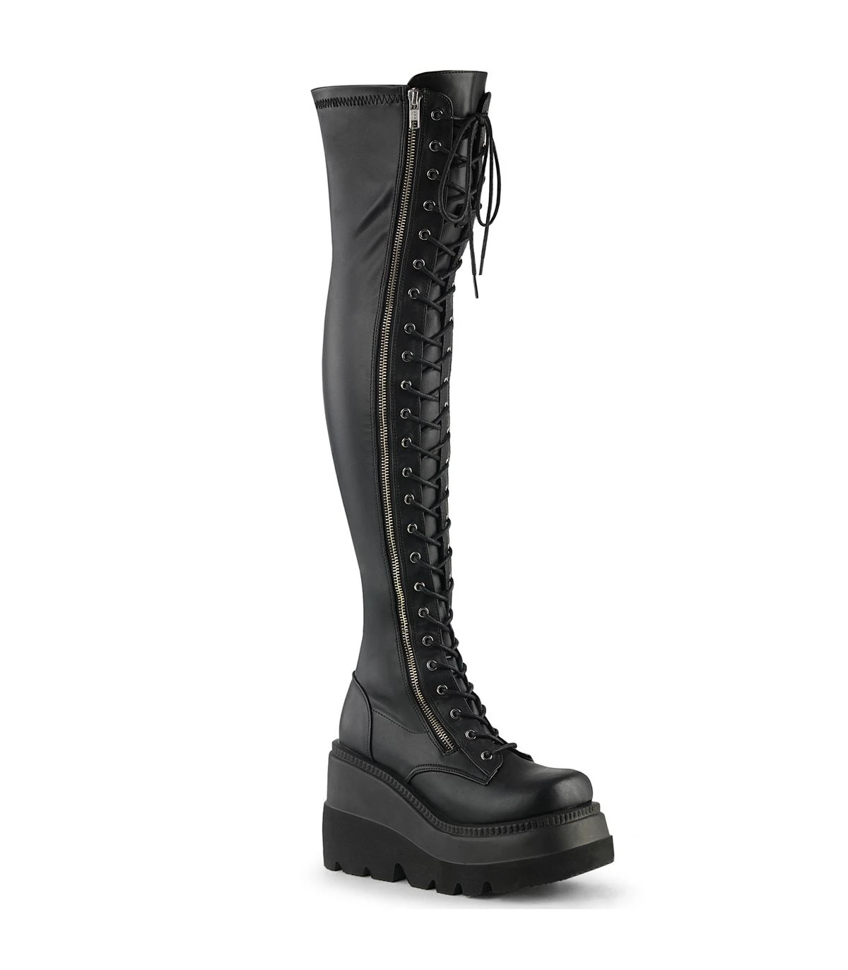 SHAKER-374 Plateau Overknee Stiefel – Schwarz matt | Demonia